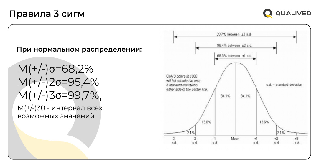 Доверительный интервал, таким образом, служит маркером повторяемости измерений. Например, если подтвержденная по результатам поверки предельная погрешность измерений прибора составила 0,040 мм + 0,060 мм/м - два сигма, то при проведении испытаний хотя бы 95,5% измерений попали в указанный интервал.