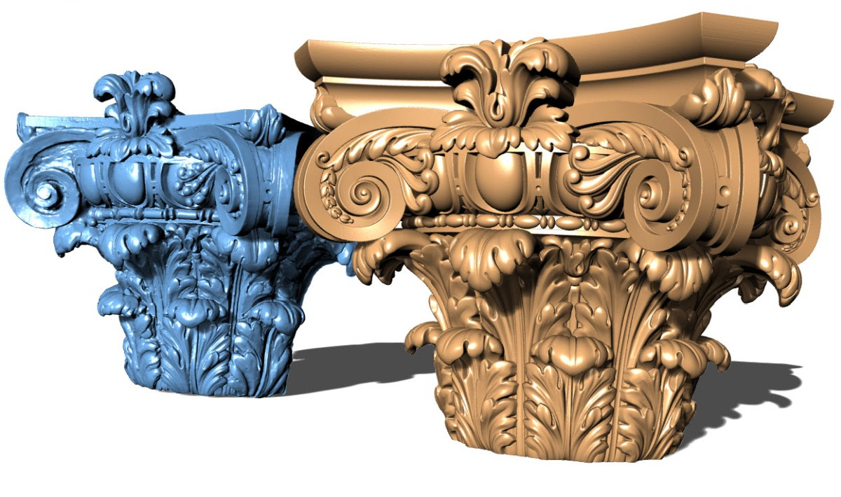 Требовалось создать точную 3D модель римской капители, сохранив стиль и пропорции оригинального рисунка из книги.
