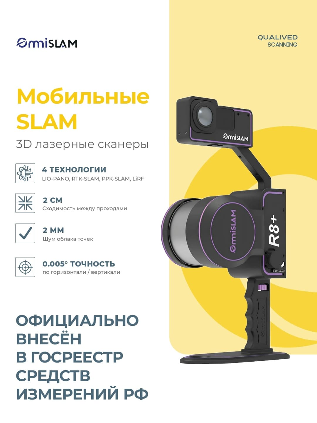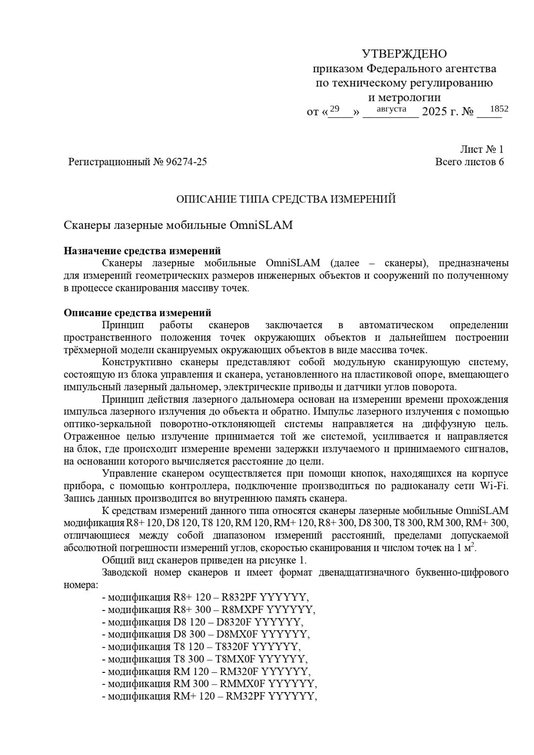 Мы рады сообщить, что 29 августа 2025 года линейка сканеров OmniSLAM (R8+, D8, T8, RM, RM+) была официально внесена в Государственный реестр средств измерений Российской Федерации под номером 96274_25.